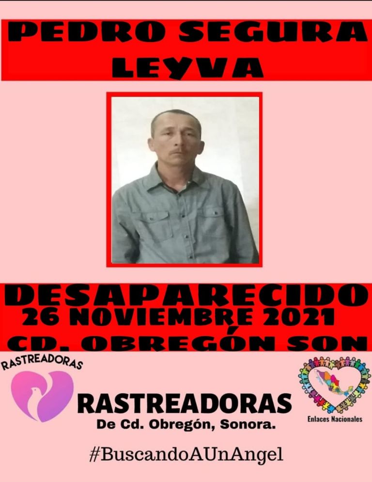 Ciudad Obregón, Sonora.- El colectivo Rastreadoras de Ciudad Obregón reveló este jueves 2 de diciembre que el señor Pedro Segura Leyva, residente de Ciudad Obregón, se encuentra en calidad de desaparecido desde hace casi una semana.