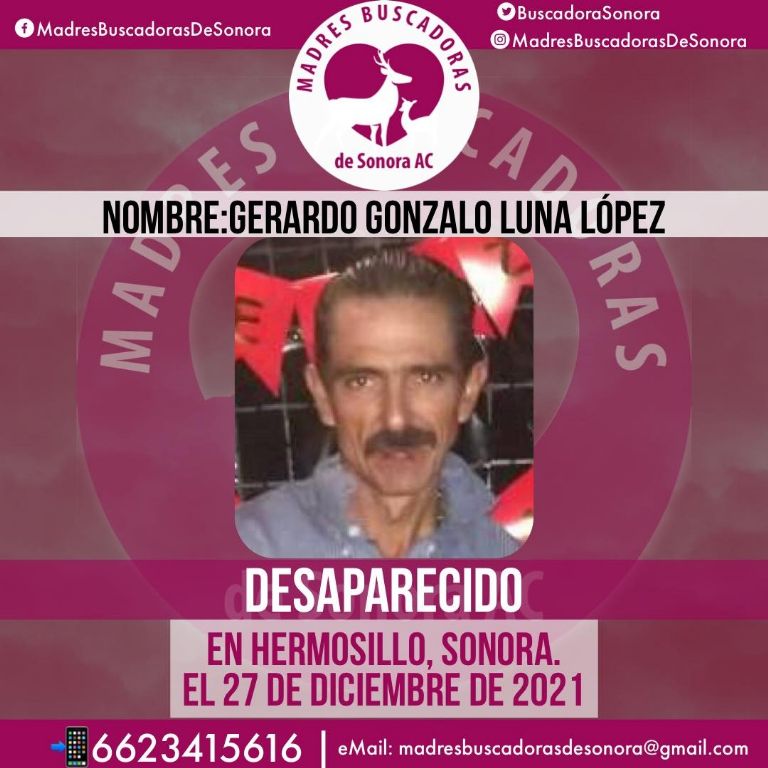 Hermosillo, Sonora.- El colectivo Madres Buscadoras de Sonora solicita la ayuda de la ciudadanía para localizar a Gerardo Gonzalo Luna López, quien se encuentra en calidad de desaparecido en Hermosillo, Sonora.