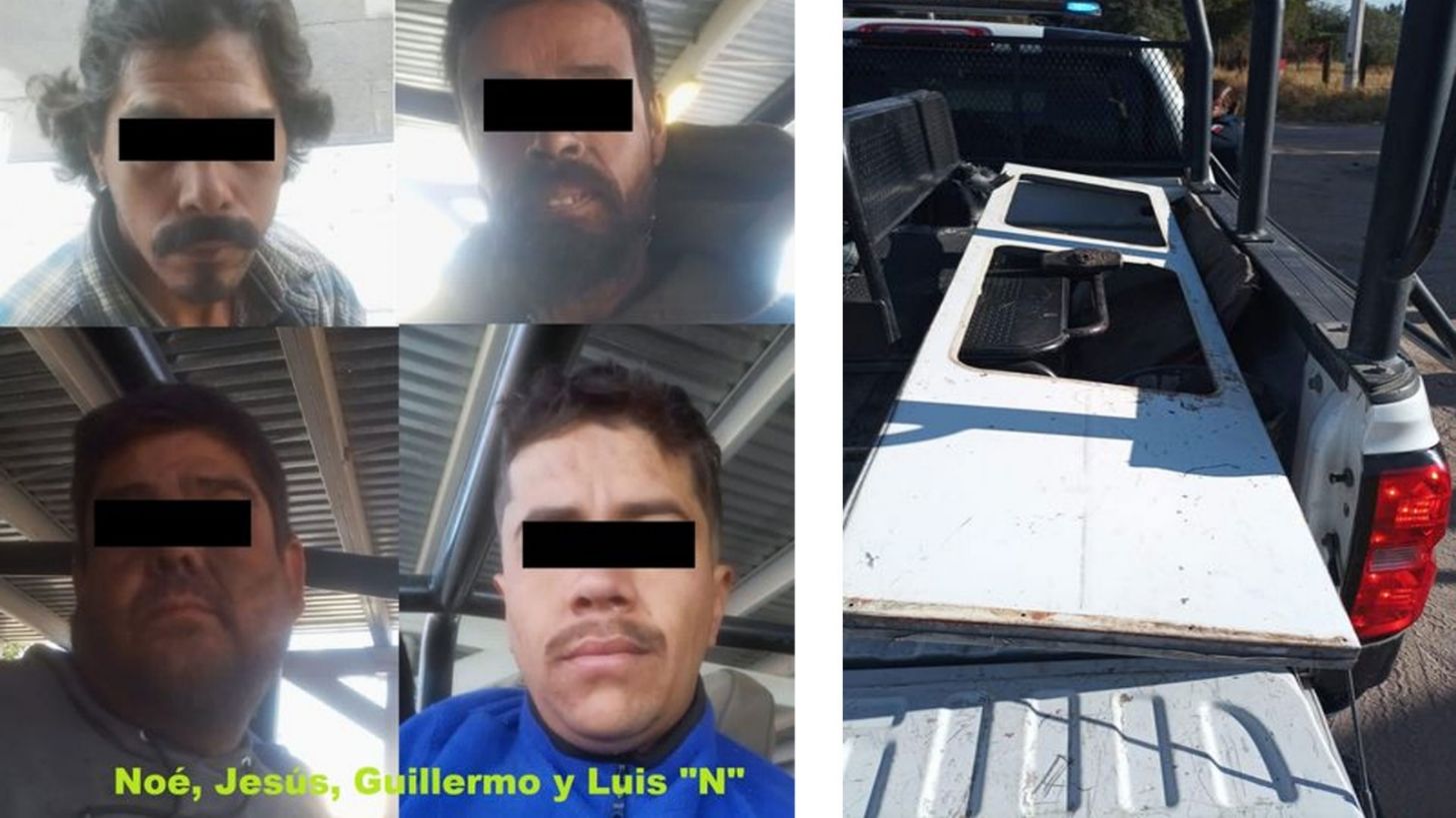 Cuando los oficiales llegaron, alrededor de las 9:05 horas, aseguraron a Noé, Jesús Rubén, Guillermo y Luis, de 44, 22, 42 y 38 años, respectivamente, quienes se encontraban quitando partes de las unidades.