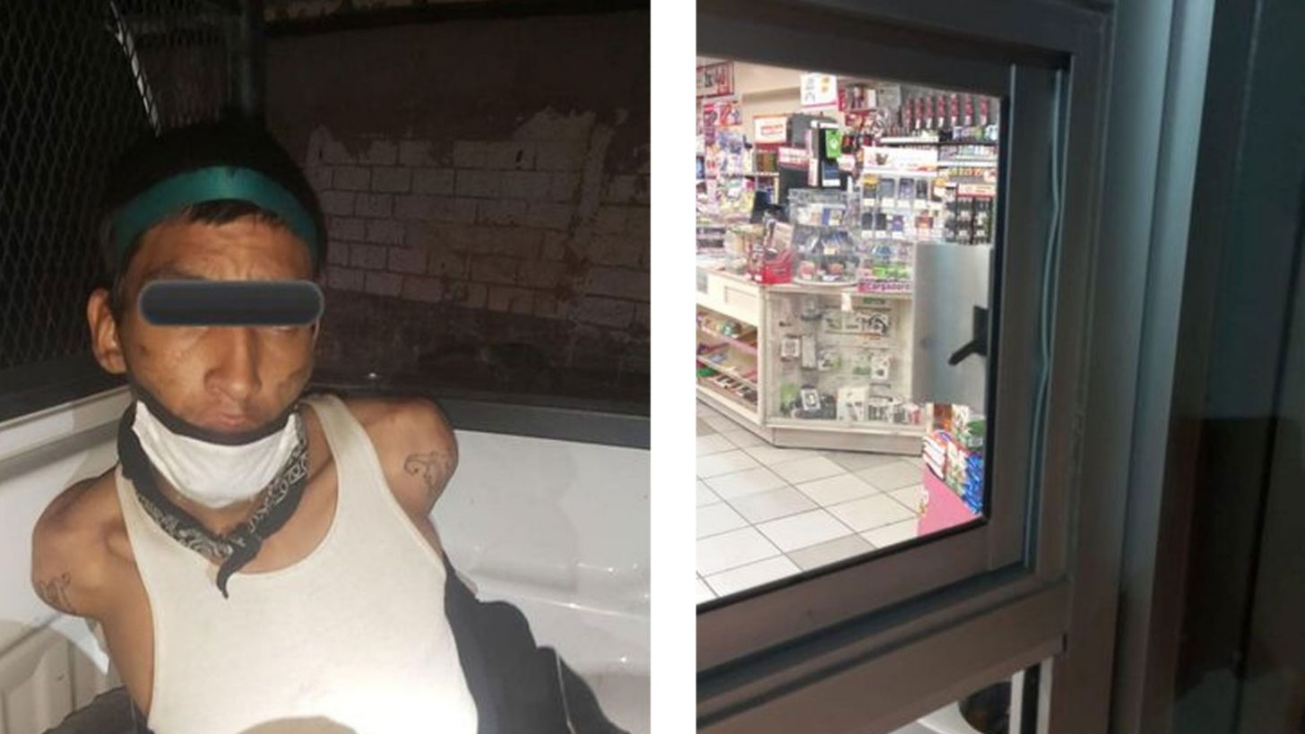 Hermosillo, Sonora.- Bryan Yosamin, de 23 años, fue arrestado por la Policía Municipal cuando intentaba desprender una ventana de una tienda de conveniencia de la colonia Del Razo en la capital sonorense.