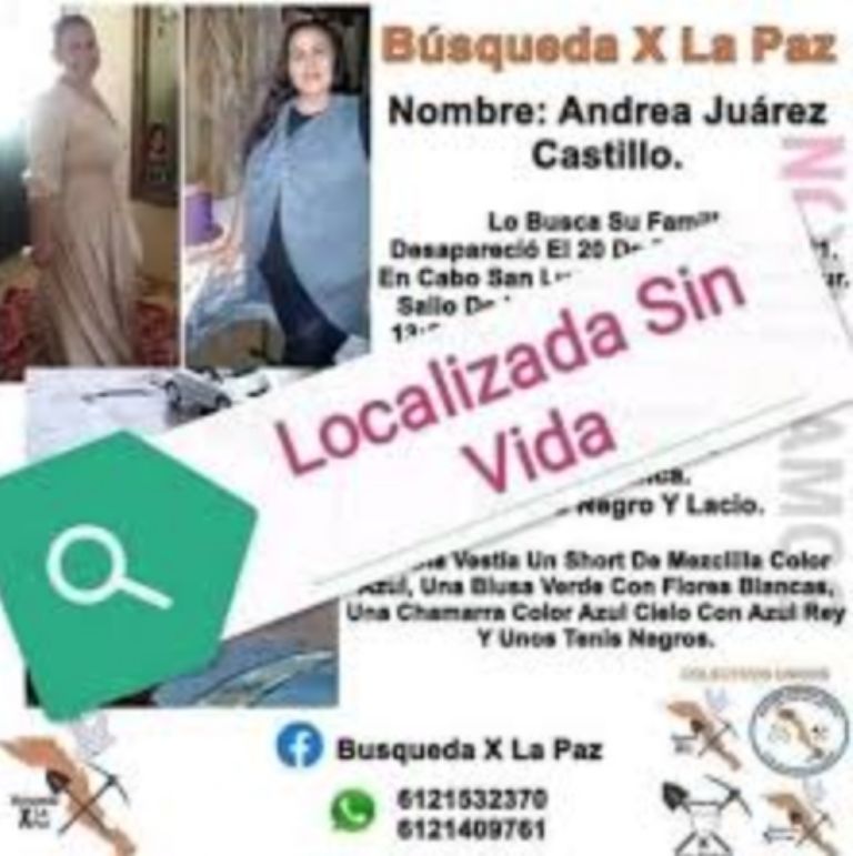 Cabo San Lucas, Baja California Sur.- Tras ser reportada como desaparecida desde el 20 de enero, encontraron muerta a Andrea Juárez Castillo de 42 años.