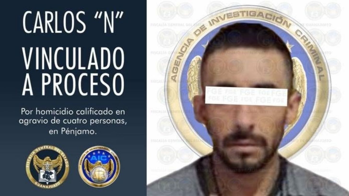 El detenido identificado como Carlos 'N' ya te encuentras tras las rejas, luego de que se le vinculara a proceso por el delito de homicidio calificado en agravio de dos personas un hombre y una mujer identificados como José 'N' y Diana 'N'.