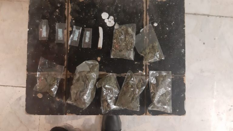Según un comunicado oficial, tras hacerle una revisión corporal se descubrió que el detenido portaba entre sus pertenencias 11 envoltorios con sustancias ilegales, de la cuales siete eran de marihuana y cuatro más de una sustancia granulada de color azul, posiblemente 'crystal'.