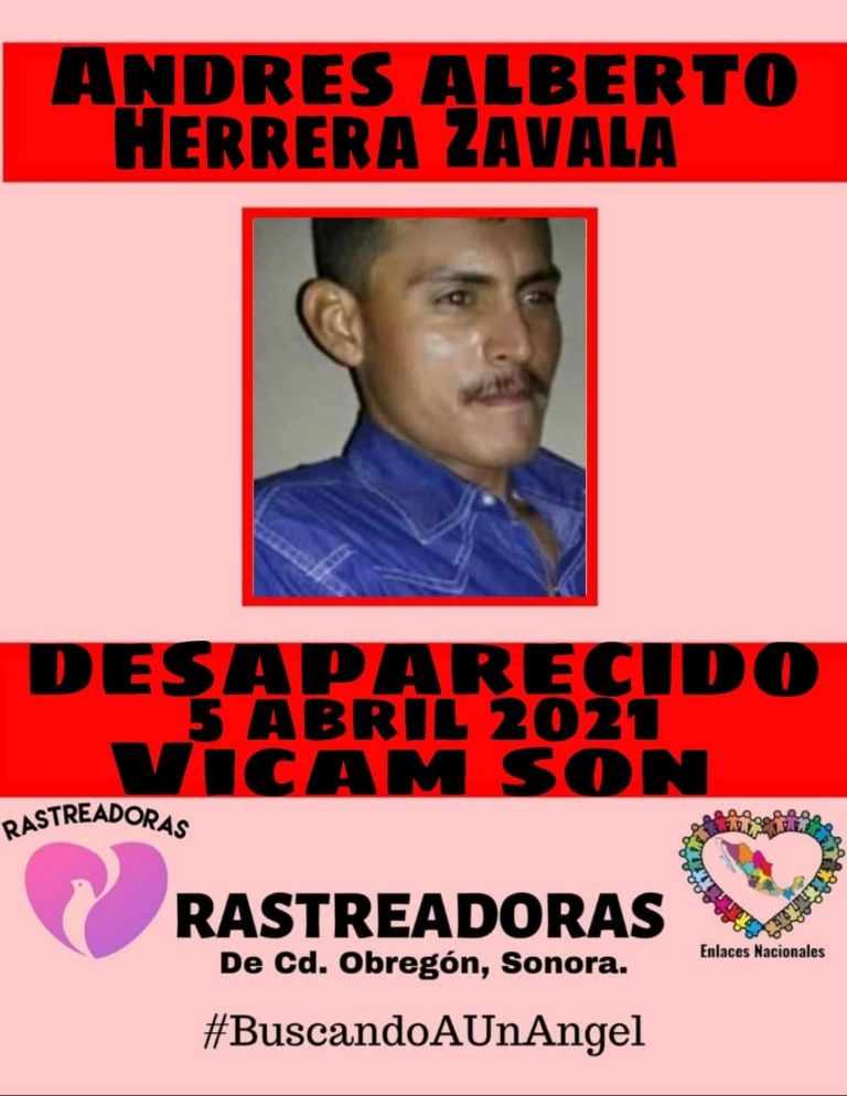 Vícam, Sonora.- A través de redes sociales, familiares y amigos de Andrés Alberto Herrera Zavala, piden el apoyo de la comunidad para dar con su paradero, ya que desde el pasado lunes nada se sabe de él.