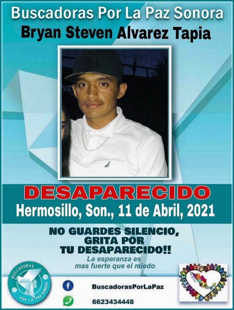 Fue el colectivo de mujeres, Buscadoras por la Paz, quien por medio de sus redes sociales compartió la ficha de búsqueda de Bryan Steven y solicitó el apoyo de la comunidad para dar con su paradero y que regrese a casa sano y salvo.