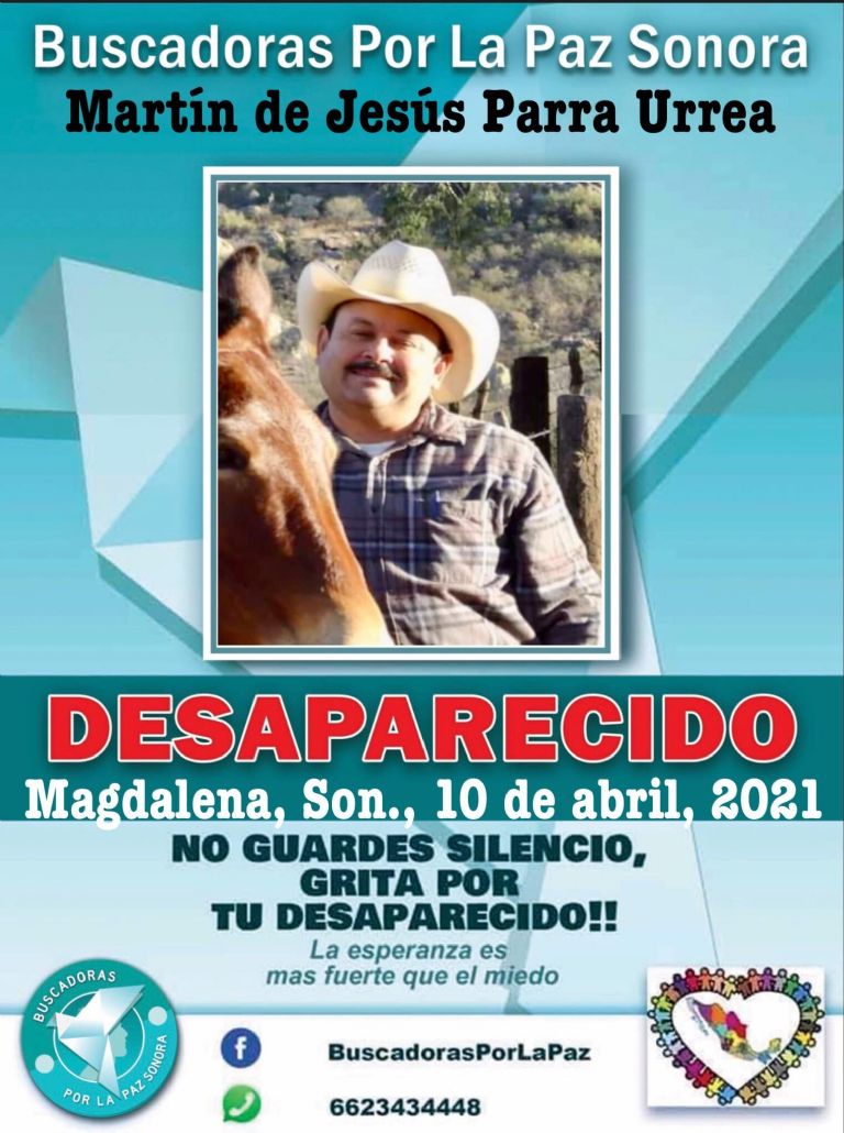 Magdalena de Kino, Sonora.- La tarde de este miércoles 14 de abril, se reportó la desaparición de Martín de Jesús Parra Urrea, en Magdalena de Kino, Sonora, de quien no se sabe nada desde el pasado 10 de abril.