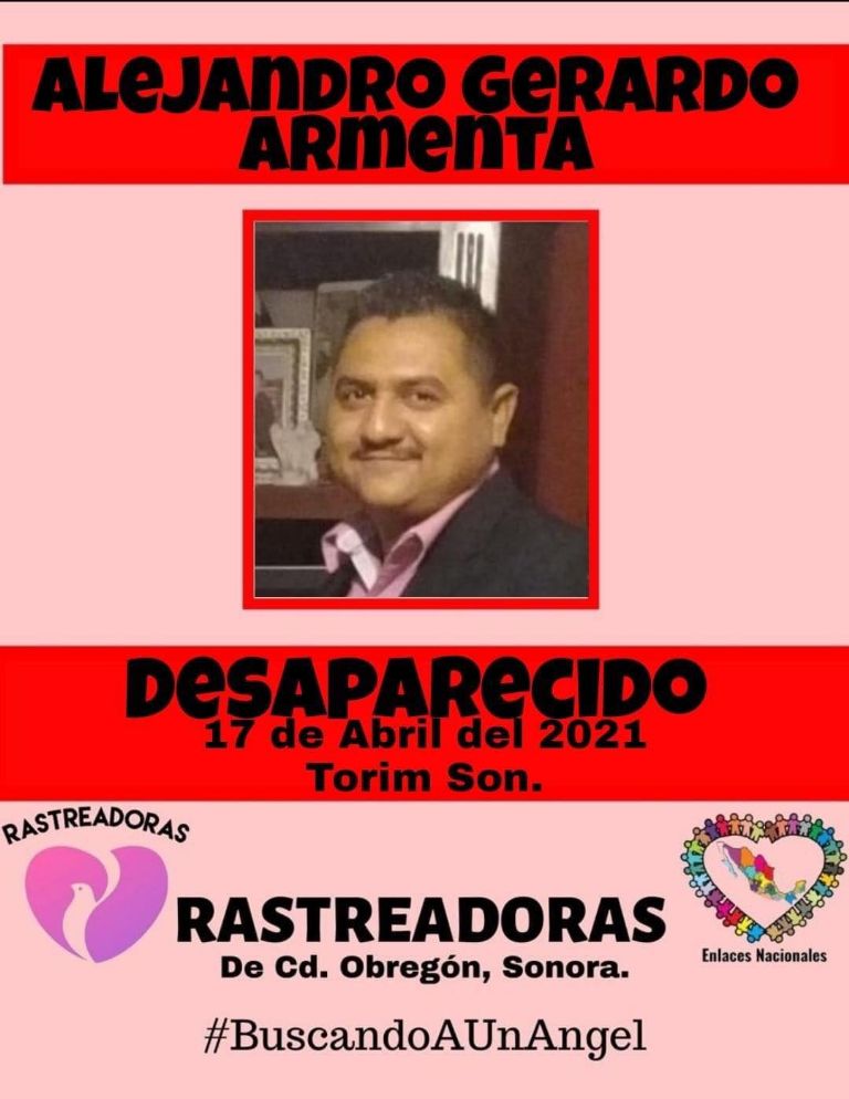 Se trata de Alejandro Gerardo Armenta de 36 años de edad, de quien no se sabe nada desde el pasado 17 de abril, según revelaron sus familiares, quienes a través de redes sociales piden el apoyo de la sociedad para dar con su paradero.