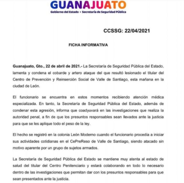 Valle de Santiago, Guanajuato.- El director de Ceresos en Guanajuato fue baleado por la mañana de este jueves. Vecinos que escucharon las detonaciones alertaron al área de seguridad.