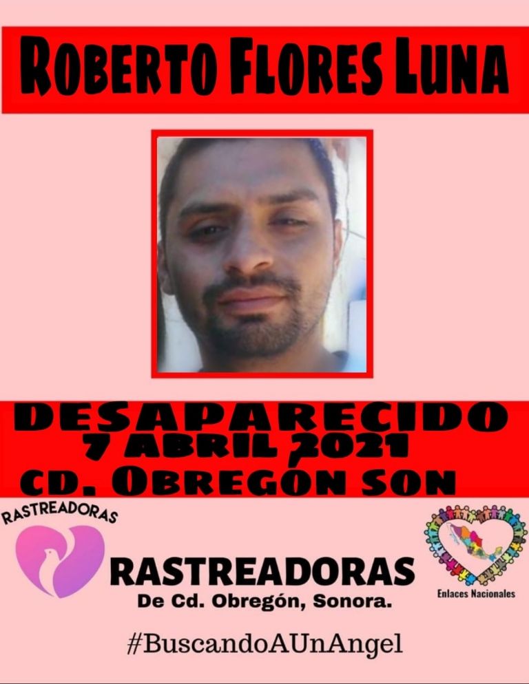 Ciudad Obregón, Sonora.- El colectivo Rastreadoras de Ciudad Obregón, informó este jueves sobre la desafortunada desaparición de Roberto Flores Luna, de quien no se sabe nada desde hace más de 3 semanas.