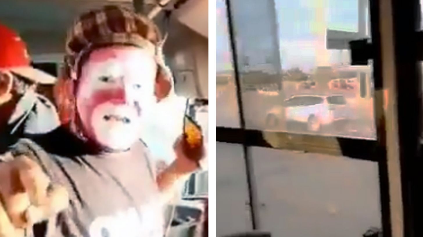 En el primer video se observa cómo una persona graba el acto de un conocido payaso de la localidad a bordo de un camión de pasajeros, sin embargo, se escuchan detonaciones de arma de fuego, lo que provoca que los pasajeros se asomen por las ventanas.