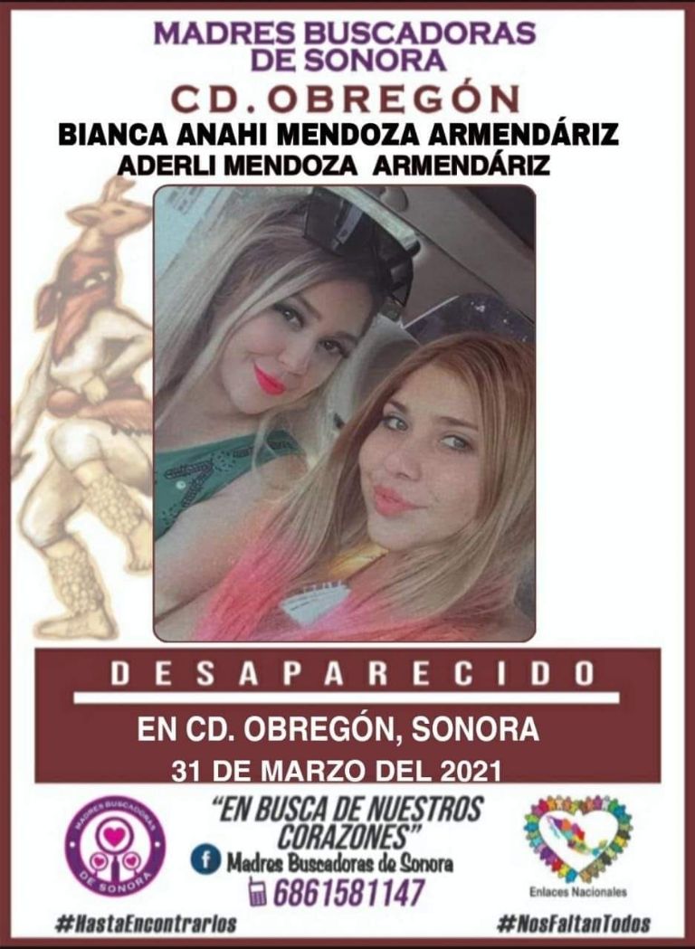 Bianca Anahí de 28 años y Aderli de 19 se encuentran desaparecidas desde la noche del pasado miércoles 31 de marzo, cuando salieron de su domicilio rumbo a Ciudad Obregón en donde cenarían en un establecimiento.