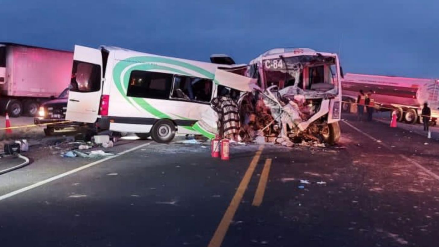 El fatal encontronazo se registró en el kilómetro 156 sucedió a alrededor de las 3:00 de la madrugada entre un camión de transporte de mineros y una van que trasladaba turistas. Ambas unidades se impactaron de frente.
