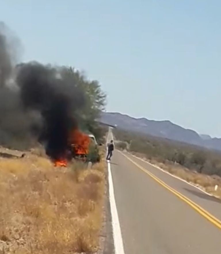 Hermosillo, Sonora.- La tarde del pasado viernes 30 de abril, día en que se celebraba el Día del Niño, un espectacular como terrorífico incendio se registró en la carretera que conduce de Hermosillo a La Colorada, la cual dejó en estado de calcinación un automóvil.