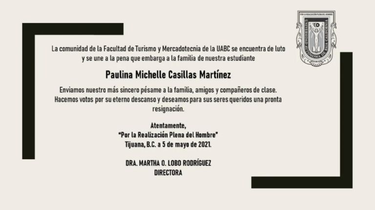 Tijuana, Baja California.- La estudiante de la Universidad Autónoma de Baja California (UABC) en la Facultad de Turismo, Paulina Michelle Casillas, fue vista por última vez con su novio, Humberto Guadalupe Mejía, el pasado 30 de abril. El 4 de mayo, sus cuerpos sin vida fueron hallados en una fosa clandestina.
