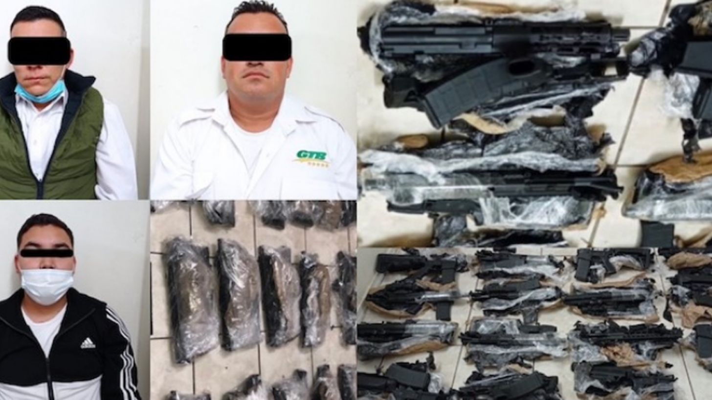 Elementos de la Policía Estatal y personal de Comercio Exterior aprehendieron a Paul 'N', Jesús 'N' y Alexis 'N', de 38, 35 y 22 años de edad, respectivamente, el primero conductor del vehículo, quien iba acompañado del maletero y el operador del autobús, las armas fueron encontradas dentro de maletas que se localizaban en la cajuela de la unidad.