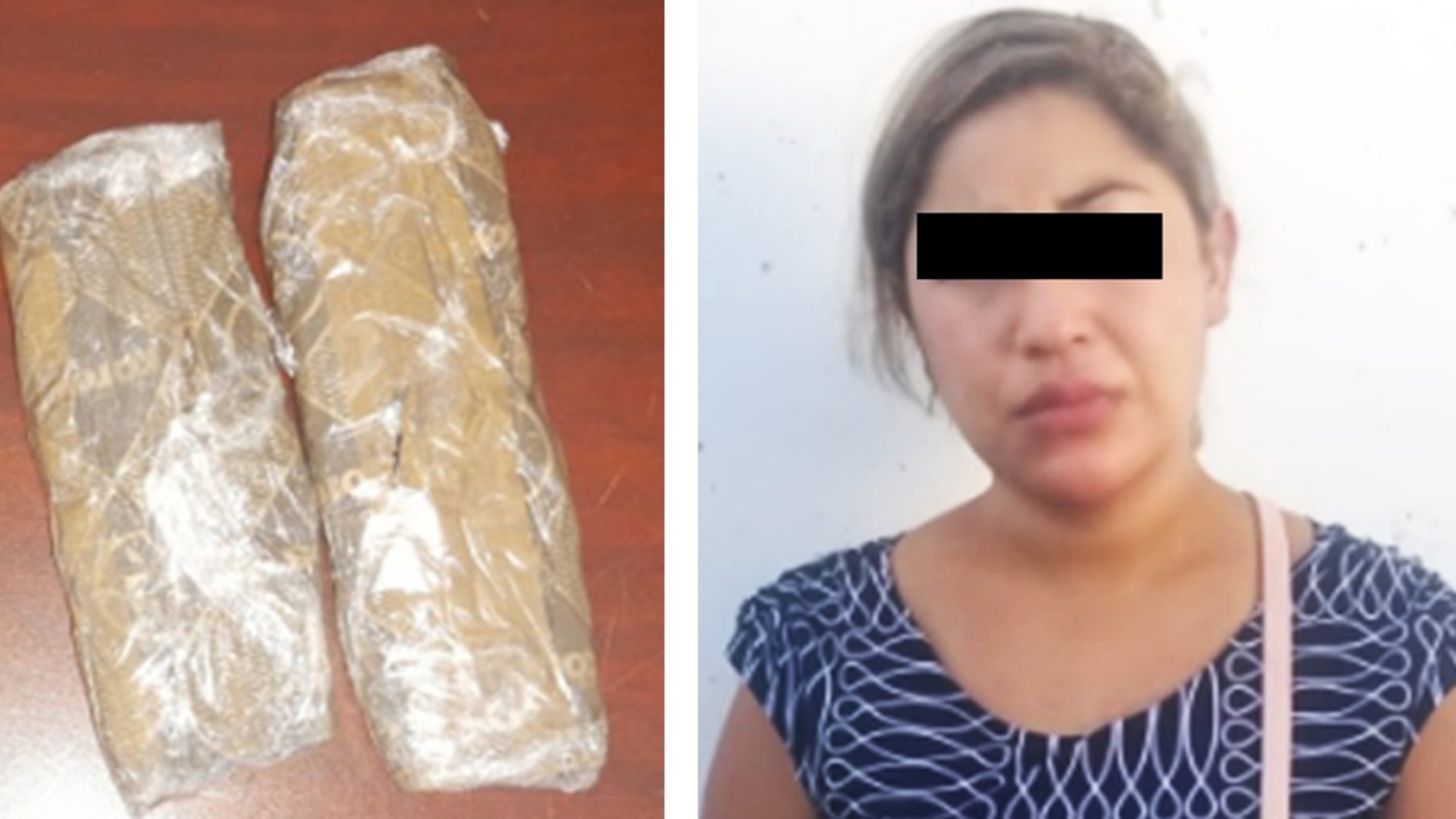 La fémina viajaba a bordo de un camión de pasajeros, que fue sometido a revisión y de esta manera se descubrió entre su equipaje cuatro paquetes que contenían en conjunto 1 kilo 200 gramos de heroína, misma que fue incautada.