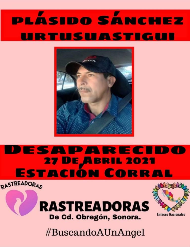 Cajeme, Sonora.- Este sábado 29 de mayo se informó a redes sociales sobre la lamentable desaparición del padre de familia Plácido Sánchez Urtusuastigui, en el poblado de Estación Corral, localizado en el municipio de Cajeme.