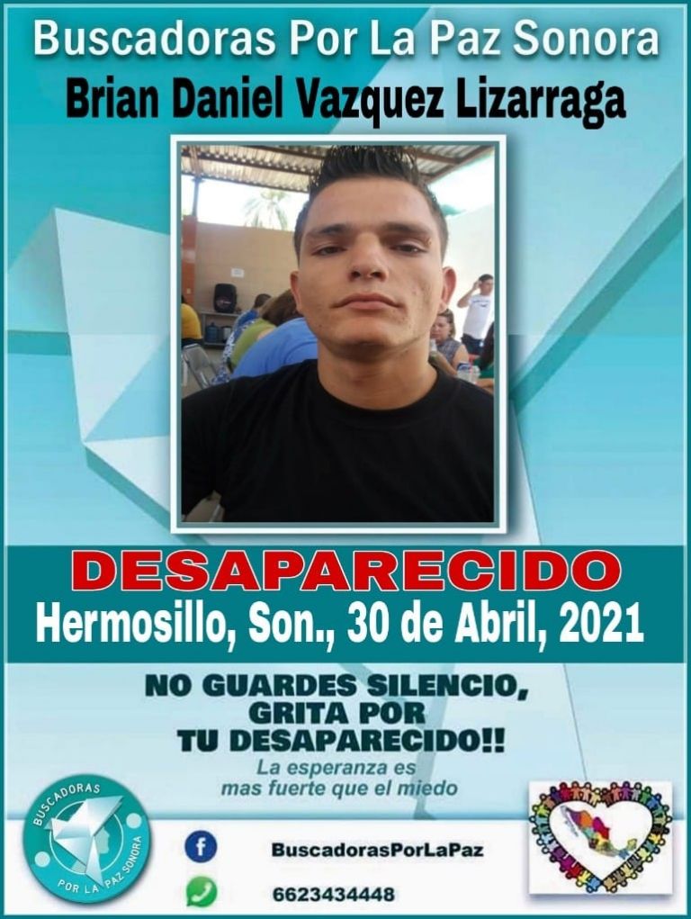 Hermosillo, Sonora.- Este martes, amigos y familiares reportaron la desaparición de Brian Daniel Vázquez Lizárraga, joven originario de Hermosillo que salió de su vivienda hace unos días y se perdió toda comunicación él.