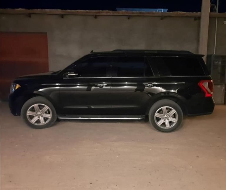 El automóvil asegurado es una camioneta de la marca Ford, línea Expedition, modelo 2019, color negro, con reporte de robo en California, Estados Unidos.