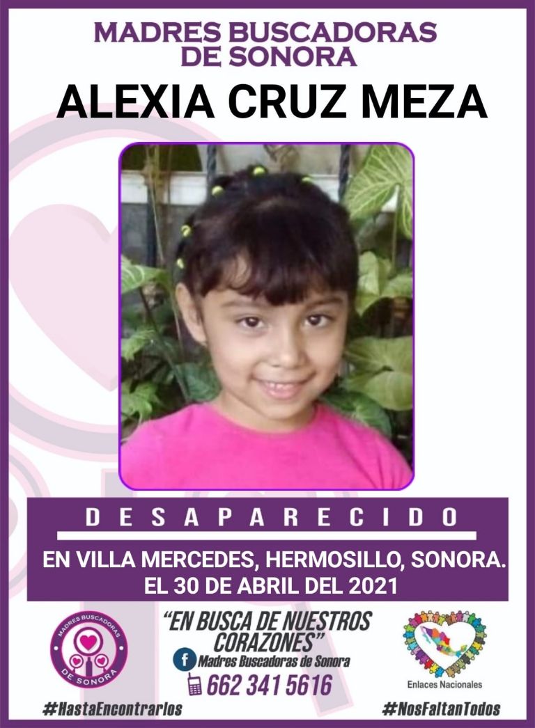 Hermosillo, Sonora.- Momentos de preocupación y angustia son los que viven los familiares de Alexia Cruz Meza, pequeña que se encuentra en calidad de desaparecida desde hace un mes y medio en su natal Hermosillo.