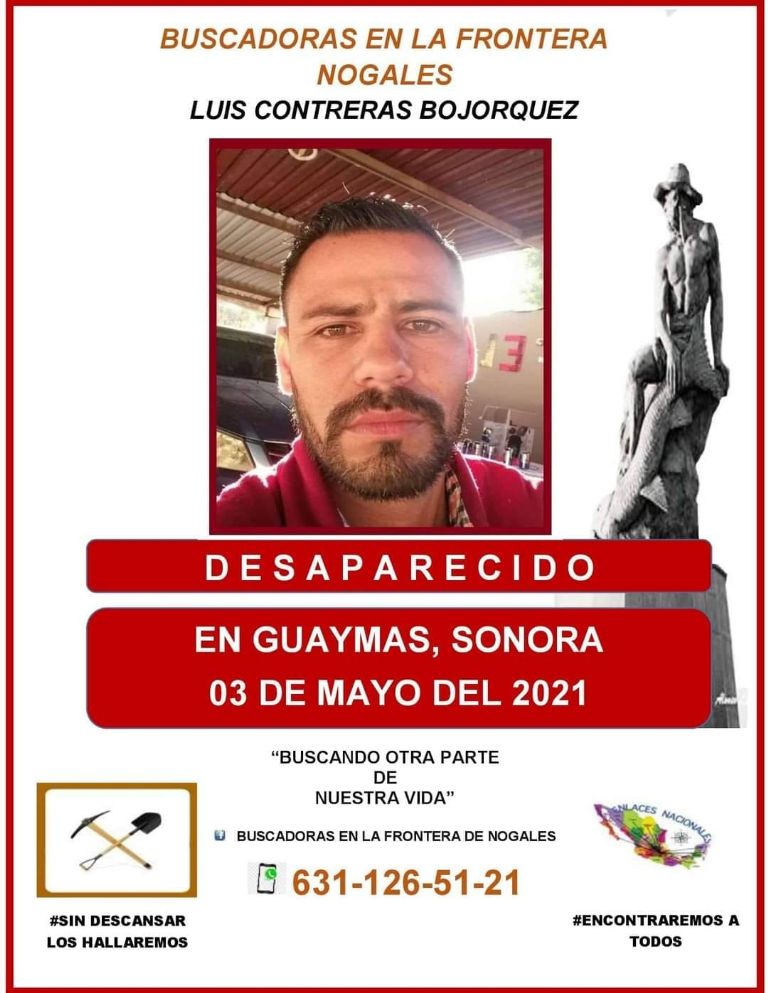 Nogales, Sonora.- La tarde de este martes 15 de mayo, el colectivo Buscadoras de la Frontera Nogales reportó la desaparición de Luis Contreras Bojórquez, quién tiene cerca de un mes y medio extraviado en su natal Nogales.