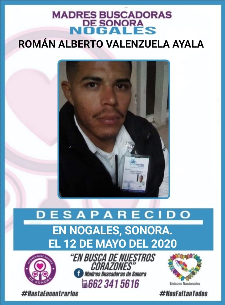 Nogales, Sonora.- La tarde de este martes 15 de junio el colectivo Madres Buscadoras de Sonora reportó la desaparición de Román Alberto Valenzuela Ayala, de quien no se sabe nada desde hace más de un mes en Nogales.
