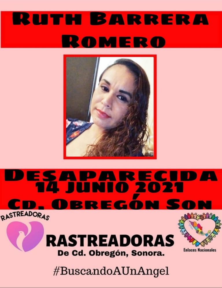 Así lo reveló el colectivo Rastreadoras de Ciudad Obregón a través de redes sociales, donde compartió la ficha de búsqueda de Ruth y detalló que la última vez que se le vio fue el pasado lunes 14 de junio cerca de las 18:00 horas.