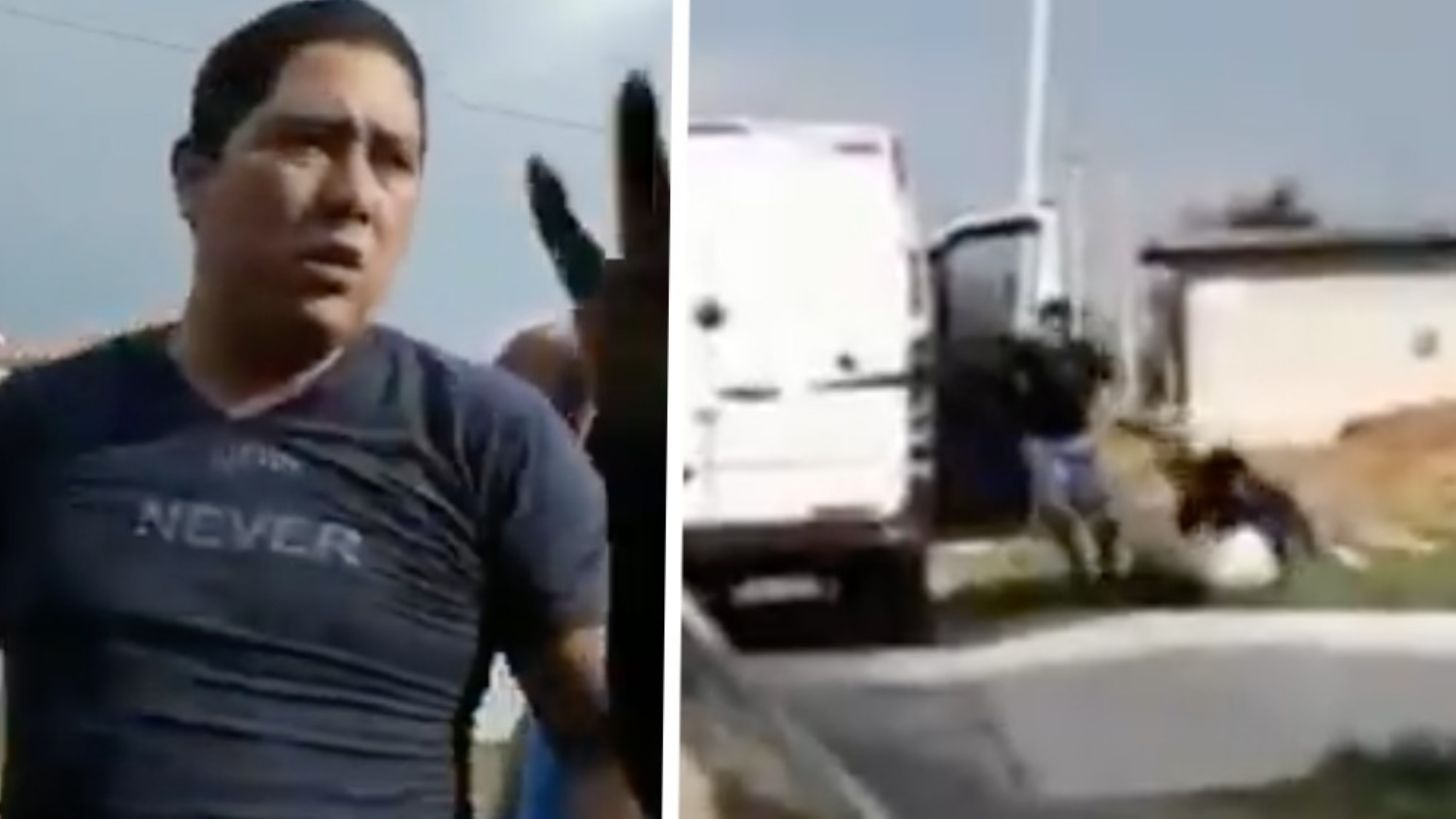 "Ayuda por favor", se escucha que grita la víctima. Mientras tanto, personas que estaban ahí continuaban diciéndole al agresor: "Ya viene la patrulla", hasta que el hombre dejó a la mujer y se aproximó a las personas allí.