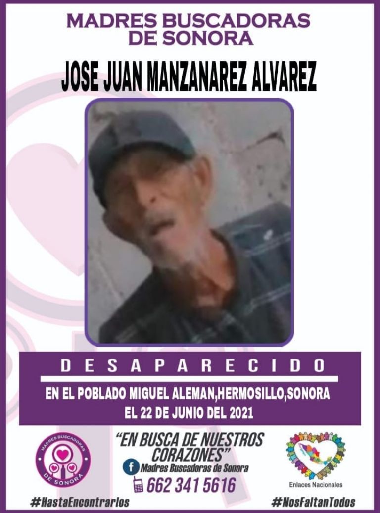Por su parte, el colectivo Madres Buscadoras de Sonora publicó la ficha de búsqueda de José Juan Manzanares Álvarez y solicitó a las personas compartir la publicación para difundir la información y ubicarlo lo antes posible.