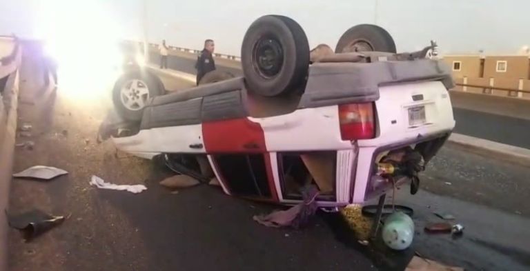 Según los primeros informes, esto se debió al exceso de velocidad, lo que provocó que el auto de color blanco golpeara el muro de contención y el conductor perdiera el control de vehículo y volcara.