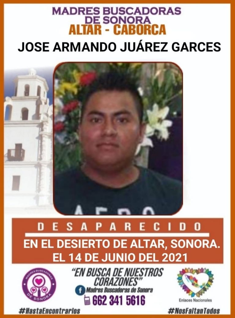 A través de redes sociales, el grupo Madres Buscadoras de Sonora compartió la ficha de búsqueda de José Armando a la vez que detalló que la última vez que fue visto por sus allegados fue el pasado 14 de junio 2021.