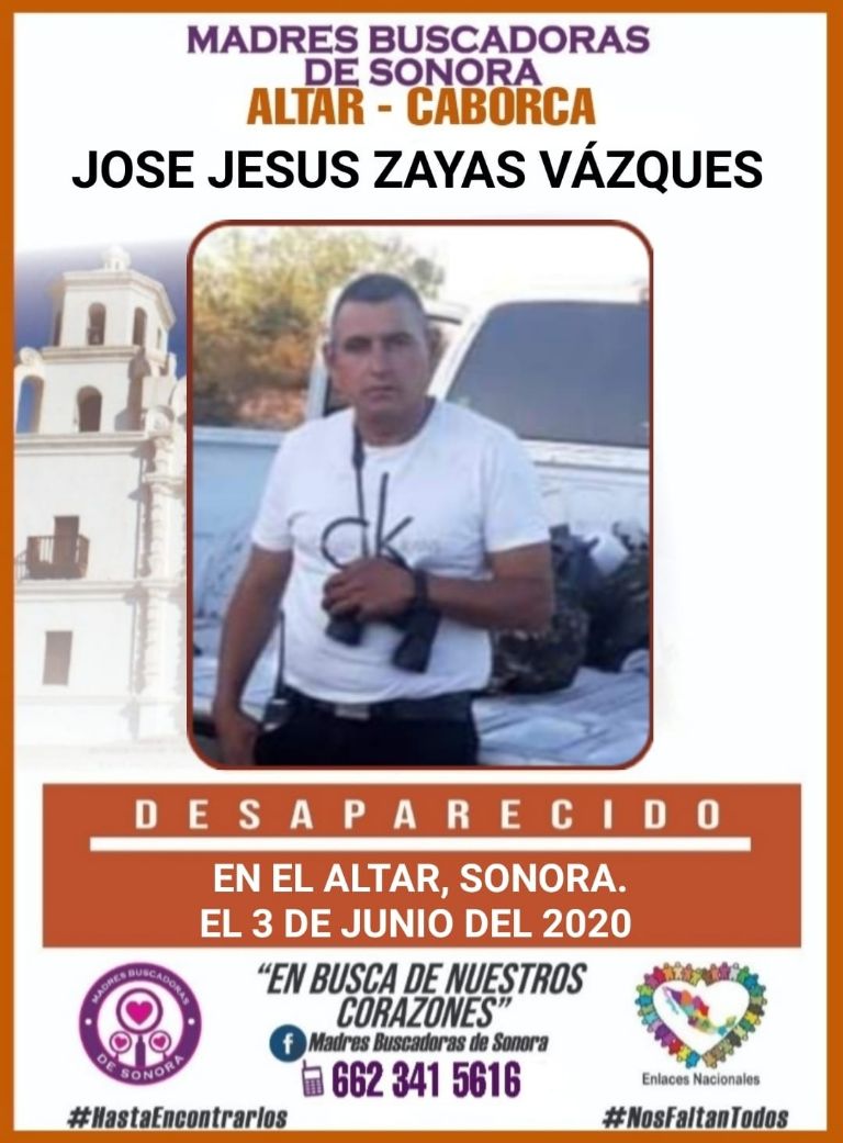 Altar, Sonora.- Ayer martes 29 de junio, el colectivo Madres Buscadoras de Sonora informó sobre la lamentable desaparición del señor José Jesús Zayas Vázquez, de quien nada se sabe desde hace varias semanas en el municipio de Altar.