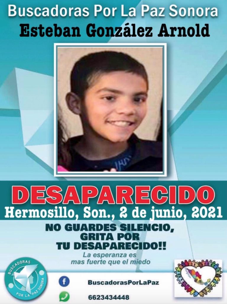 Hermosillo, Sonora.- Tras ser visto por última vez el pasado 2 de junio, aparece con vida el menor Esteban González Arnold de 13 años, quien desapareció en Hermosillo.