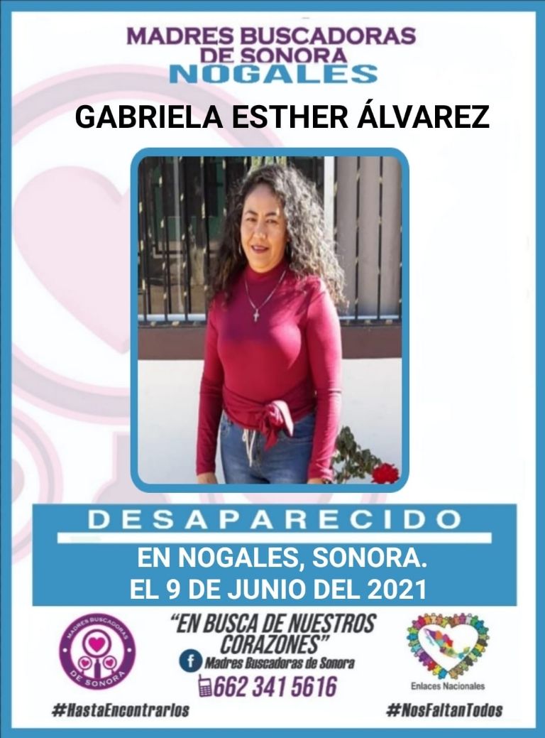 Nogales, Sonora.- La tarde de este miércoles, el colectivo Madres Buscadoras de Sonora alertó sobre la desaparición de Gabriela Esther Álvarez, señora originaria de Nogales, de quien nada se sabe desde hace varios horas.