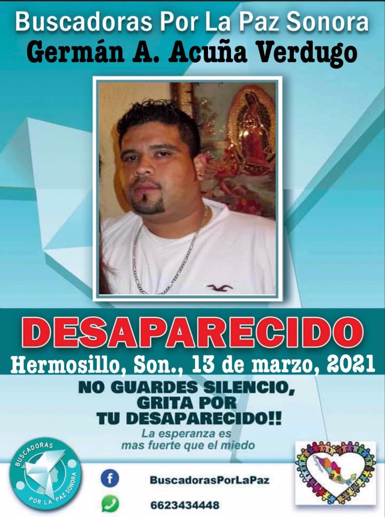 Por su parte, colectivos como Buscadoras por la Paz, Madres Buscadoras de Sonora y Guerreras Buscadoras de Sonora han compartido la ficha de búsqueda de Acuña Verdugo para apoyar en su pronta localización.