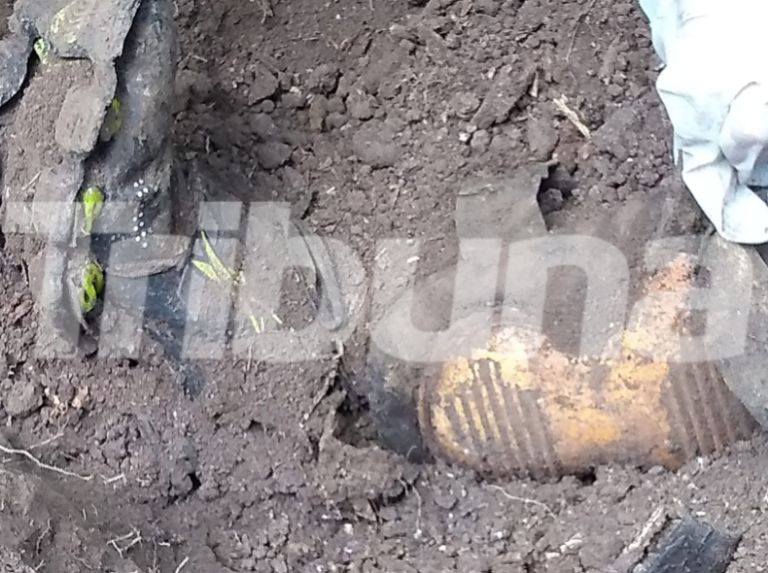Una vez que empezaron a desenterrarlo se pudieron ver unos zapatos deportivos, aparentemente de un hombre, y diversos huesos, indicando que el cuerpo llevaba bastante tiempo bajo tierra.