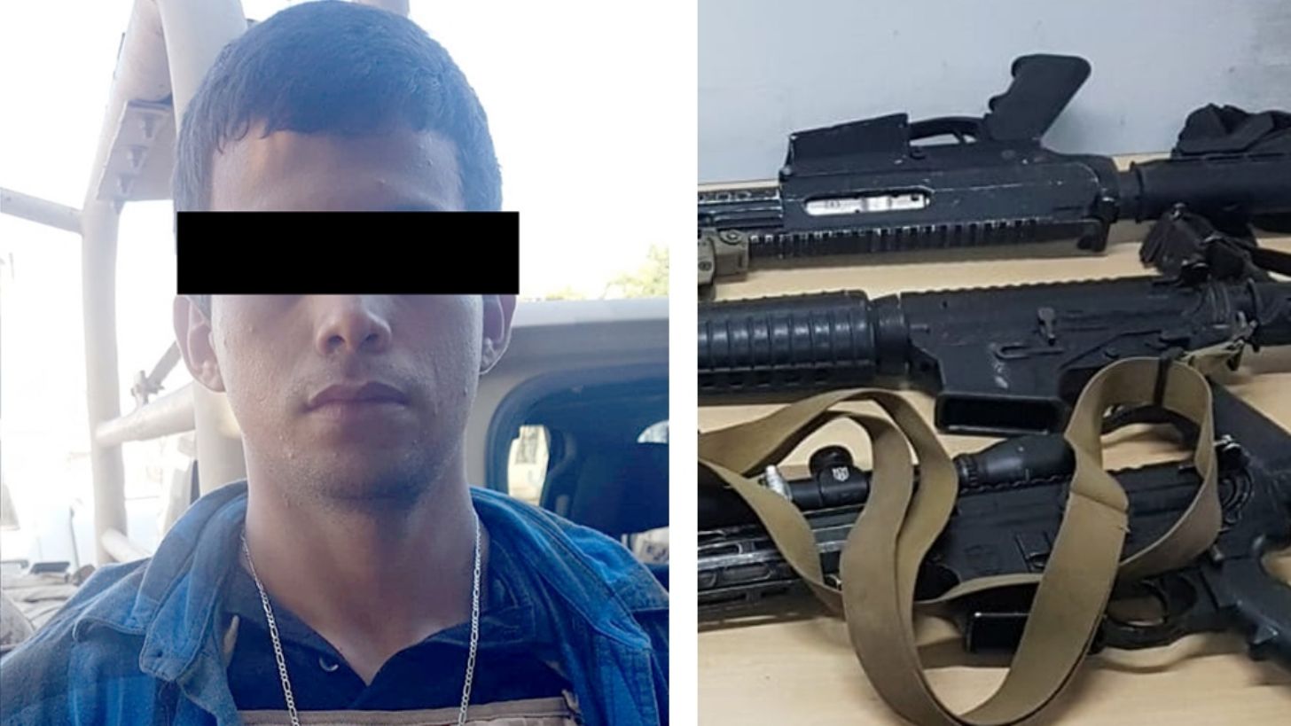Guaymas, Sonora.- Un supuesto sicario fue detenido con cuatro armas de fuego, equipo táctico y un vehículo robado en el municipio de Guaymas, por elementos de la Policía Estatal de Seguridad Pública (PESP) y la Secretaría de la Defensa Nacional (Sedena).