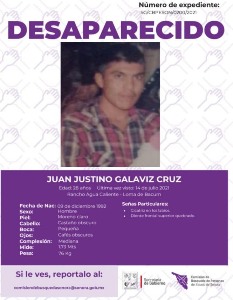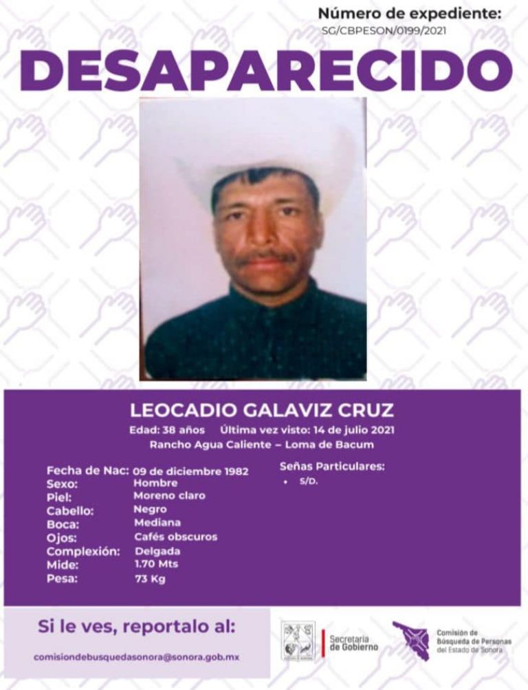 Leocadio Galaviz Cruz, cuenta con 38 años y Juan Justino Galaviz Cruz con 28, ambos son hermanos y el extravío se dio en el trayecto de Agua Caliente a Loma de Bácum