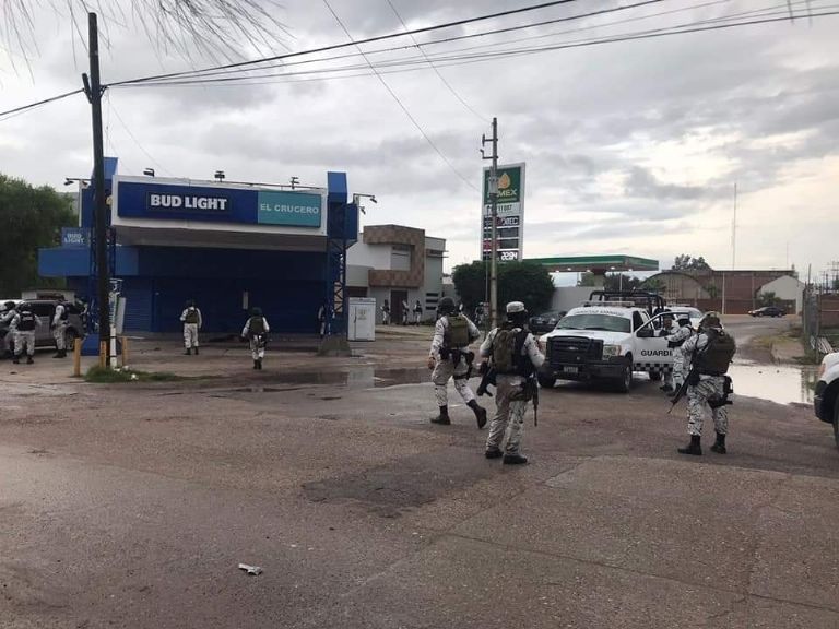 Personal de la Guardia Nacional, militares y policías estatales atendieron el reporte por lo que de inmediato se trasladaron a la zona, no sin antes ser recibidos a balazos, logrando la detención de 10 sujetos, a quienes se les aseguraron siete armas de fuego, equipo táctico y un vehículo.