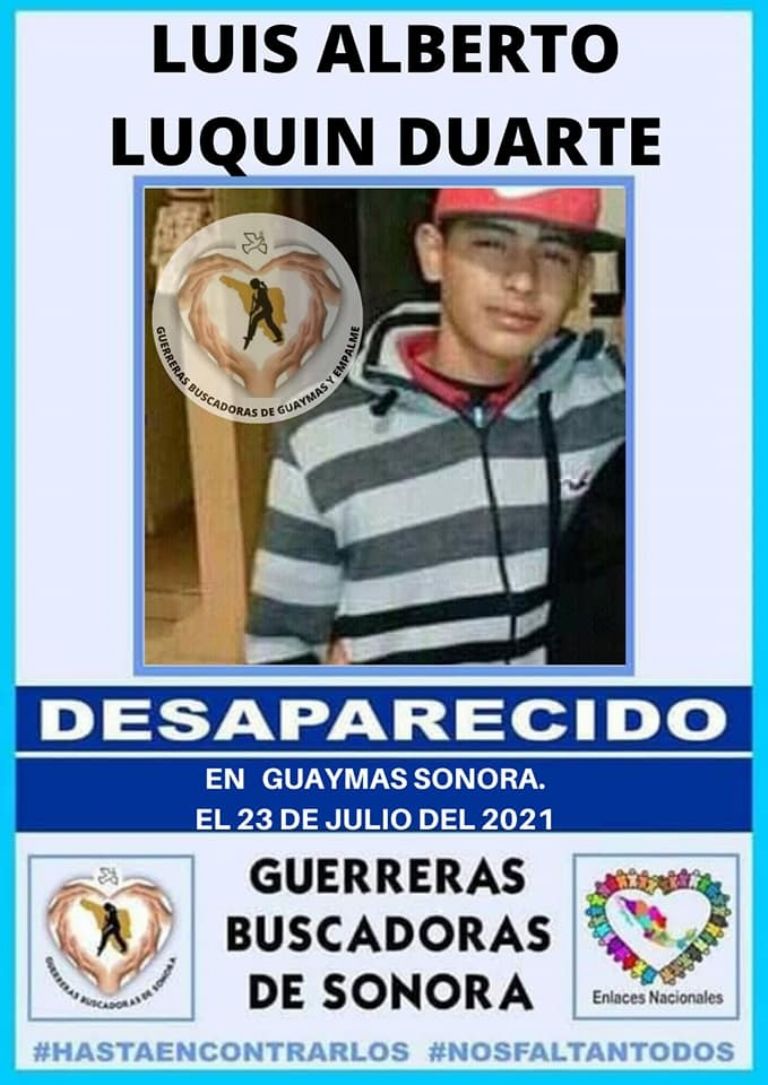 Guaymas, Sonora.- Desde hace varios días que la familia de Luis Alberto Luquin Duarte reportó su desaparición en el municipio de Guaymas; desde entonces no han parado de buscarlo y aún mantienen la esperanza de que regrese a casa.