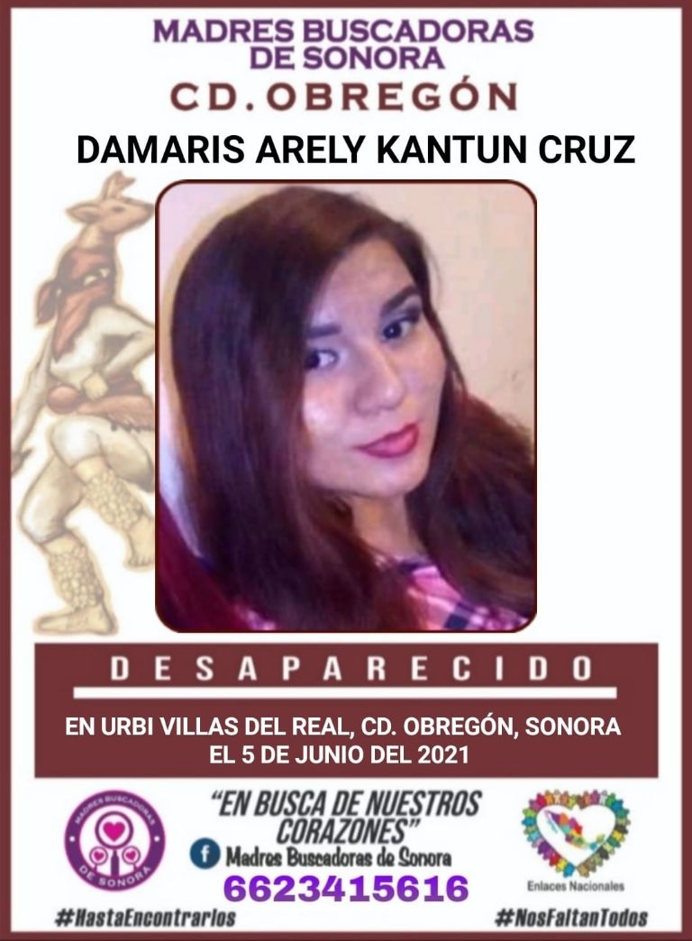 Hermosillo, Sonora.- Momentos de preocupación y angustia vive la familia de Dámaris Arely Kantún Cruz, al no saber nada sobre su paradero desde el pasado mes de junio, cuando se perdió toda comunicación con ella en Ciudad Obregón.