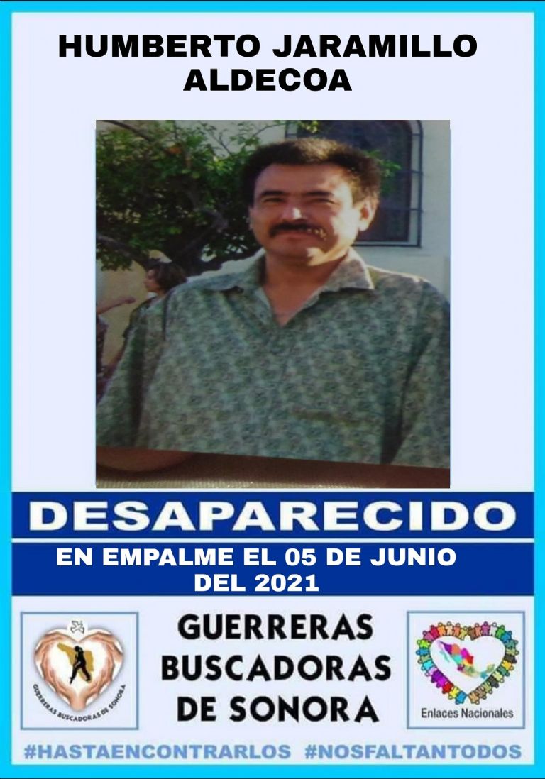Empalme, Sonora.- La tarde de este lunes 5 de julio, el colectivo Guerreras Buscadoras de Sonora informó sobre la desaparición del señor Humberto Jaramillo Aldecoa, de quien nada se sabe desde hace un mes en Empalme.
