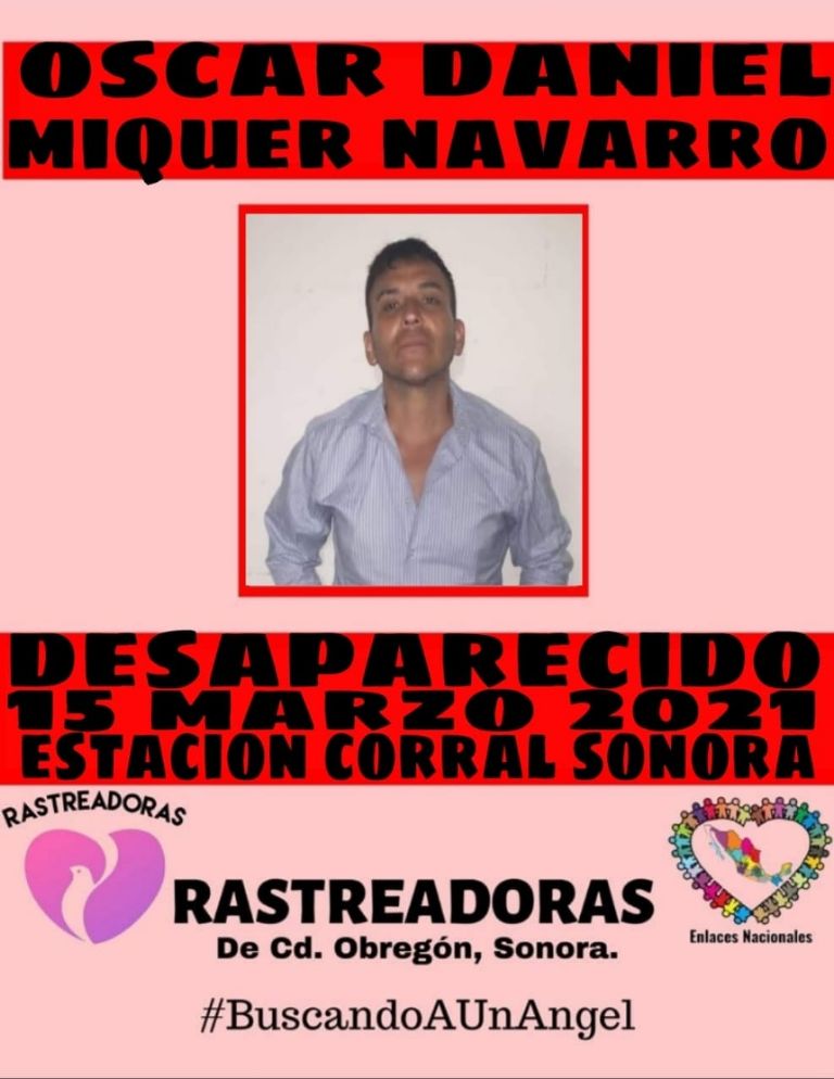 Estación Corral, Sonora.- Desde hace varios meses que la familia de Óscar Daniel Miquer Navarro vive con la angustia de no conocer su paradero, pues desapareció sin dejar rastro en la comunidad cajemense de Estación Corral.
