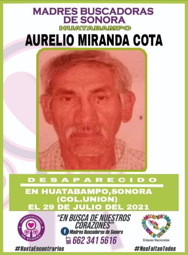 Si alguien lo ha visto favor de comunicarse al 6471102647. Su nombre es Aurelio Miranda Cota de la colonia Unión, Huatabampo si alguien lo ha visto favor de comunicarse…", se lee en redes sociales.