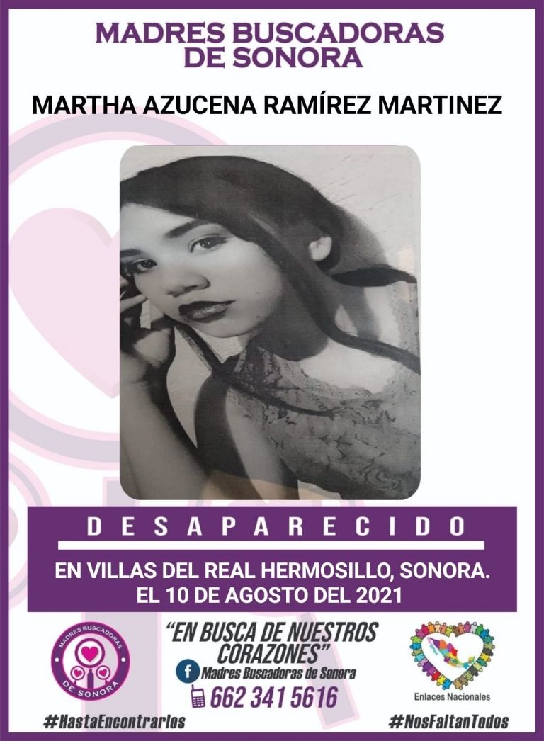 Hermosillo, Sonora.- Familiares reportaron la lamentable desaparición de la joven Martha Azucena Ramírez Martínez, de quien nada se sabe desde hace varias horas en la Hermosillo, Sonora y piden ayuda para traerla de vuelta a casa.