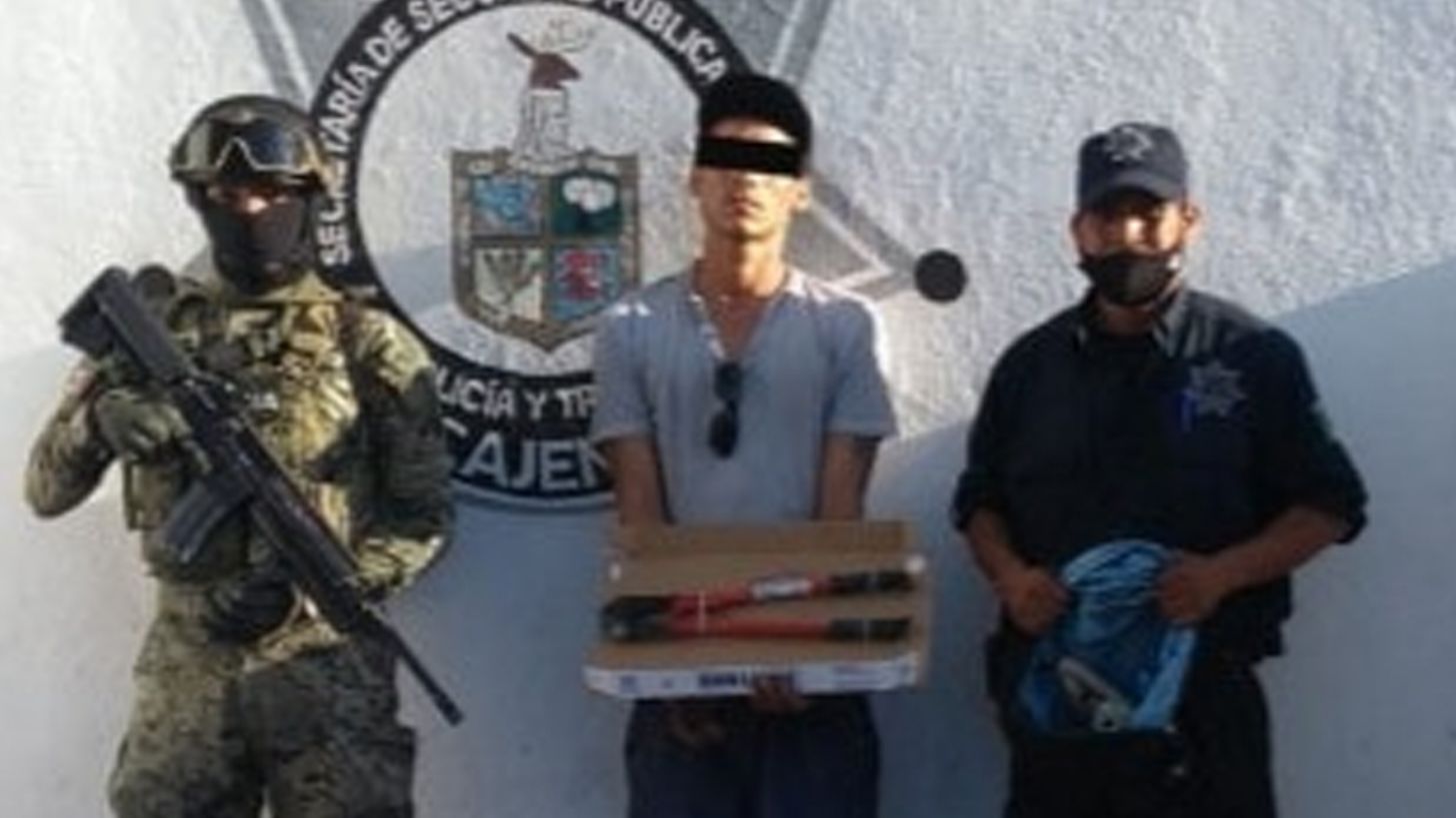 La detención se suscitó por la calle Paseo Miravalle y Andalucía, cerca de las 15:35 horas, por agentes de la Policía Municipal y Marina, quienes realizaban recorridos de vigilancia en la colonia Villa Fontana y acudieron de inmediato a un reporte por parte de la ciudadanía, donde se informaba sobre un robo de tubería.