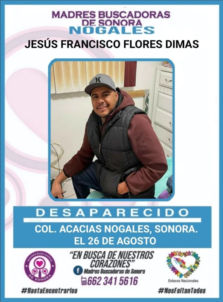 Nogales, Sonora.- Este martes 31 de agosto se reportó la lamentable desaparición de Jesús Francisco Flores Dimas, de quien nada se sabe desde hace varios días en Nogales, Sonora y se pide la ayuda de la comunidad para localizarlo.