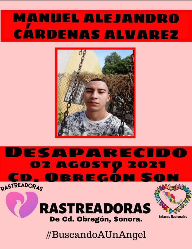 Por todo lo anterior, Rastreadoras de Ciudad Obregón pide a la comunidad compartir la ficha de búsqueda de Manuel Alejandro mediante redes sociales para que la información llegue a más gente y que el caso no quede en el olvido.