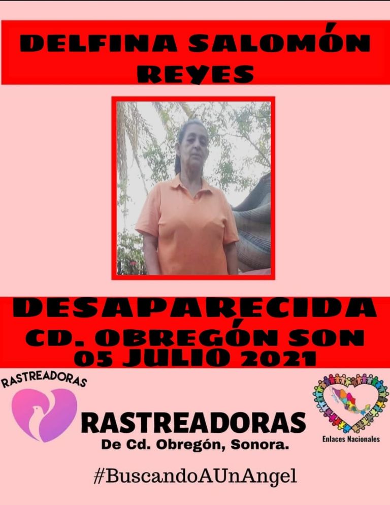 Ciudad Obregón, Sonora.- Momentos de incertidumbre y angustia son los que vive la familia de la señora Delfina Salomón Reyes, quien desapareció sin dejar rastro en Ciudad Obregón, Sonora y es buscada sin descanso por sus allegados.