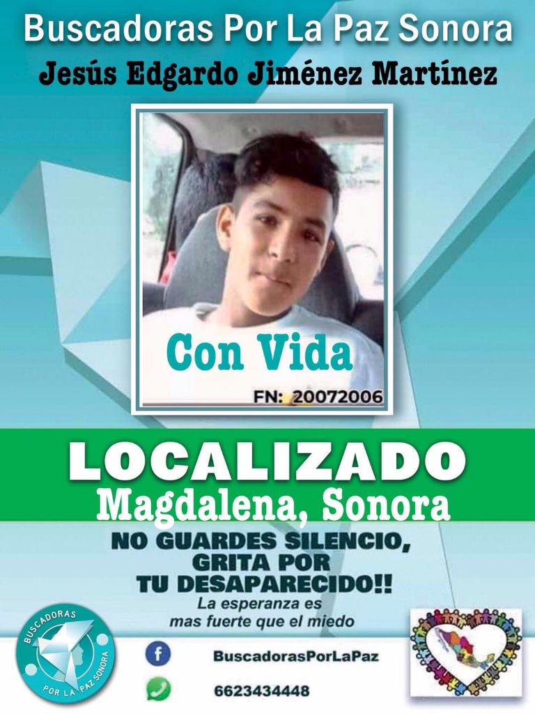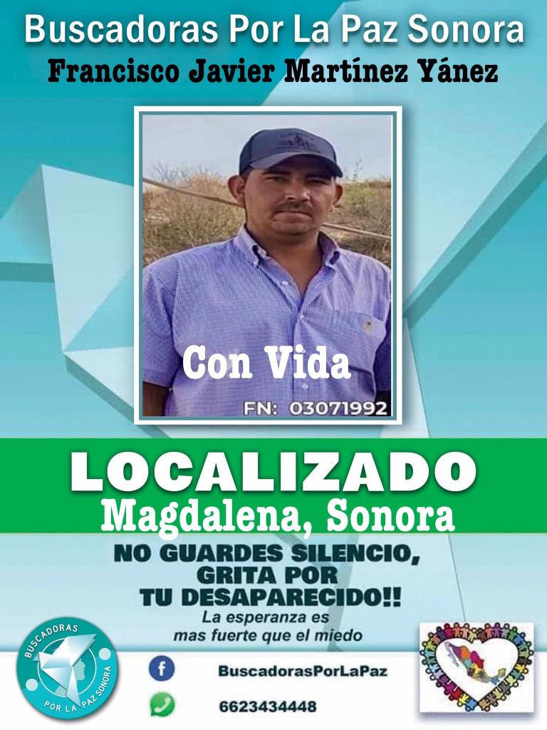 Así lo confirmó el colectivo de mujeres Buscadoras por la Paz a través de un par de publicación hechas en Facebook, donde aprovechó para agradecer a todas las personas que ayudaron a compartir las fichas de búsqueda de los extraviados.